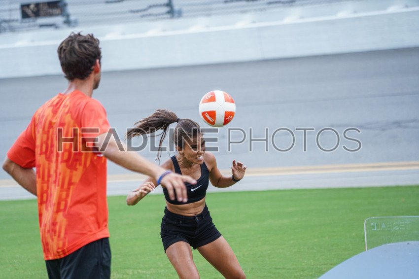 Daytona, Florida, USA, July 2, 2022, People playing Teqball during the SoccerFest at Daytona Speedway. (Photo Credit: Marty Jean-Louis)