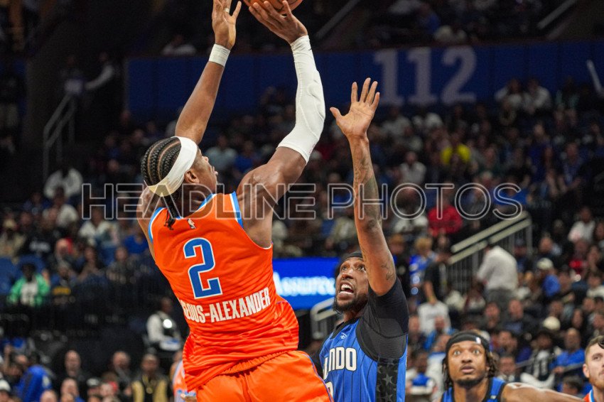 Orlando, Florida, USA, December 19, 2024, Oklahoma Thunder guard Shai Gilgeous-Alexander #2 attempt to score in the second half at the Kia Center. (Photo Credit: Marty Jean-Louis)