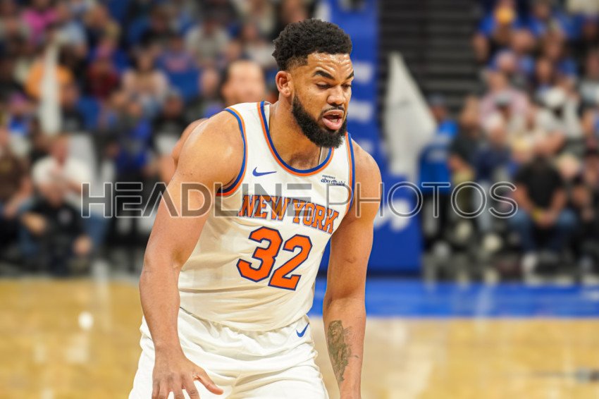 Orlando, Florida, USA, December 27, 2024, New York Knicks center Karl-Anthony Towns #32 runs forward at the Kia Center. (Photo Credit: Marty Jean-Louis)
