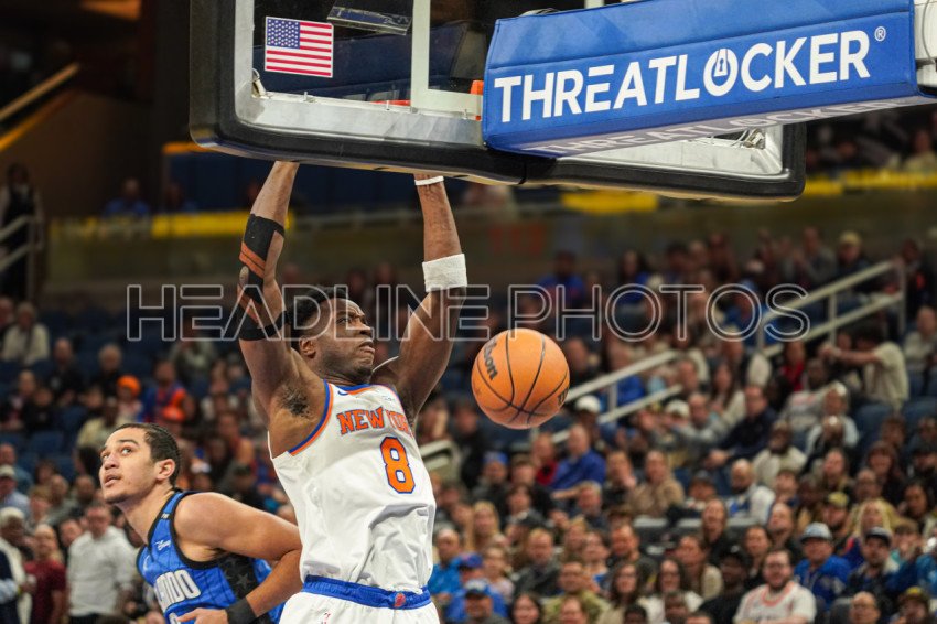 Orlando, Florida, USA, December 27, 2024, New York Knicks forward OG Anunoby #8 makes a dunk at the Kia Center. (Photo Credit: Marty Jean-Louis)