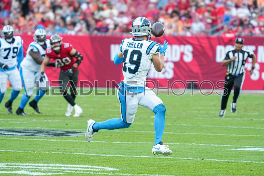 Tampa Bay, Florida, USA, December 29, 2024, Carolina Panthers wide receiver Adam Thielen #19 makes a catch at Raymond James Stadium. (Photo Credit: Marty Jean-Louis)