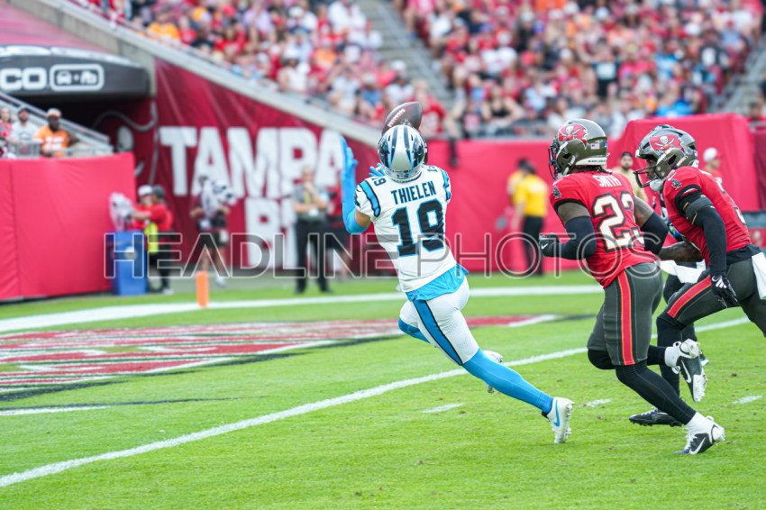 Tampa Bay, Florida, USA, December 29, 2024, Carolina Panthers wide receiver Adam Thielen #19 makes a catch resulting in a touchdown at Raymond James Stadium. (Photo Credit: Marty Jean-Louis)