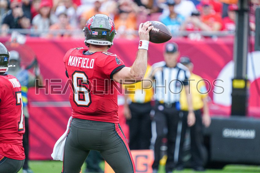 Tampa Bay, Florida, USA, December 29, 2024, Tampa Bay Buccaneers quarterback Baker Mayfield #6 readies to make a pass at Raymond James Stadium. (Photo Credit: Marty Jean-Louis)