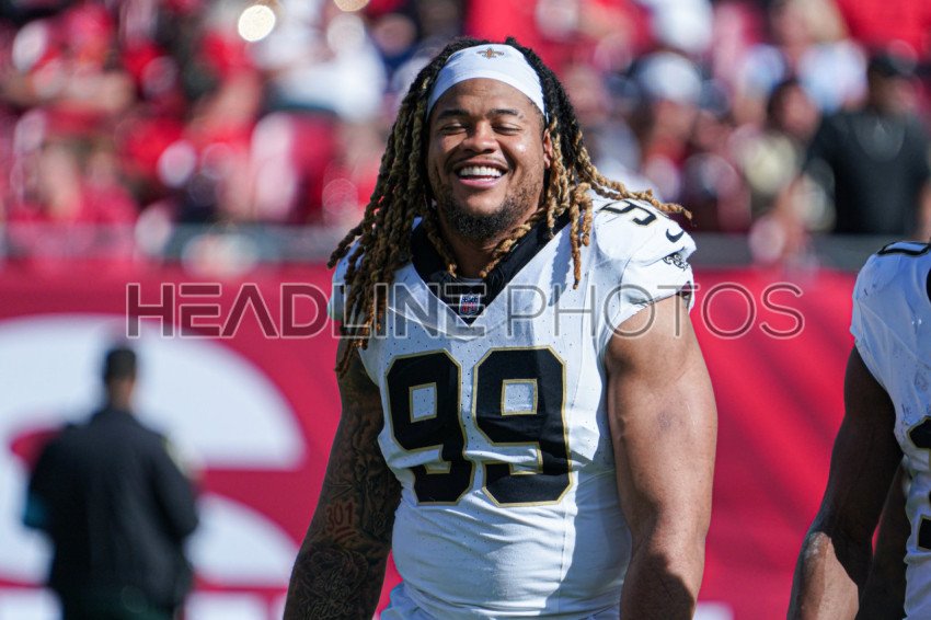 Tampa Bay, Florida, USA, January 5, 2025, New Orleans Saints player Chase Young #99 at Raymond James Stadium. (Photo Credit: Marty Jean-Louis)