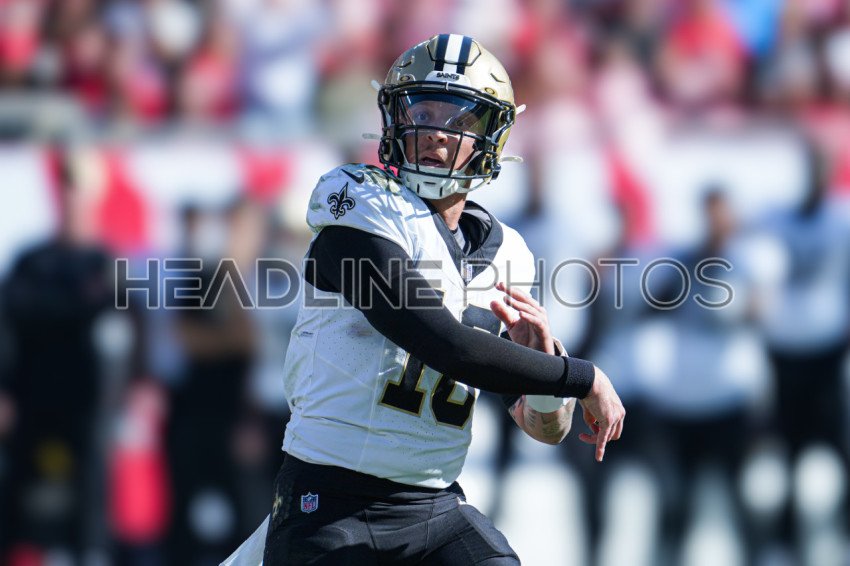 Tampa Bay, Florida, USA, January 5, 2025, New Orleans Saints quarterback Spencer Rattler #18 makes a pass during the first half at Raymond James Stadium. (Photo Credit: Marty Jean-Louis)
