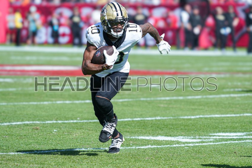 Tampa Bay, Florida, USA, January 5, 2025, New Orleans Saints wide receiver Marquez Valdes-Scantling #10 makes a run at Raymond James Stadium. (Photo Credit: Marty Jean-Louis)