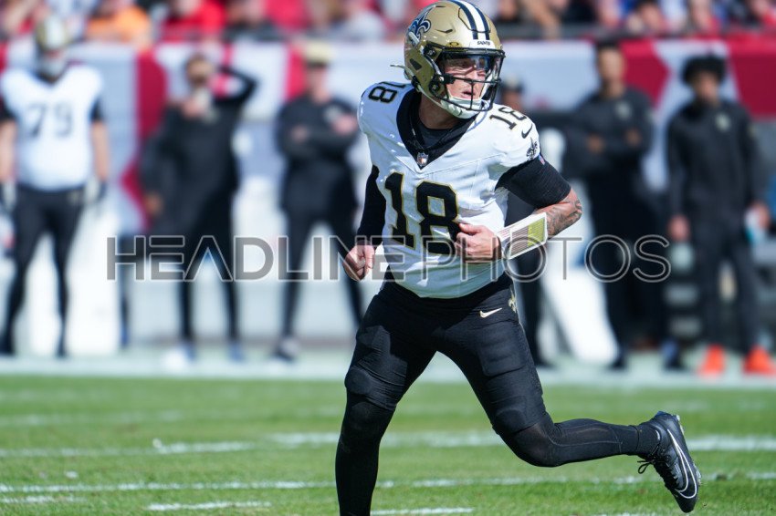 Tampa Bay, Florida, USA, January 5, 2025, New Orleans Saints quarterback Spencer Rattler #18 during the first quarter at Raymond James Stadium. (Photo Credit: Marty Jean-Louis)