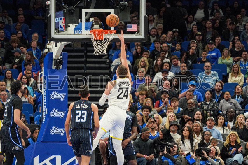 Orlando, Florida, USA, January 5, 2025, Utah Jazz center Walker Kessler #24 makes a basket in the first at the Kia Center. (Photo Credit: Marty Jean-Louis)