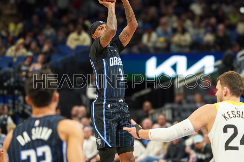 Orlando, Florida, USA, January 5, 2025, Orlando Magic guard Kentavious Caldwell-Pope #3 shoots a three at the Kia Center. (Photo Credit: Marty Jean-Louis)