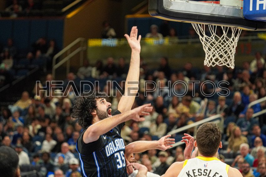 Orlando, Florida, USA, January 5, 2025, Orlando Magic center Goga Bitadze #35 attempt to score at the Kia Center. (Photo Credit: Marty Jean-Louis)