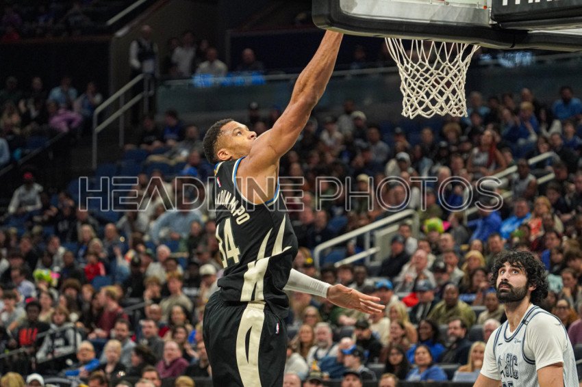 Orlando, Florida, USA, January 10, 2025, Milwaukee Bucks Forward Giannis Antetokounmpo #34 makes a basket at the Kia Center. (Photo Credit: Marty Jean-Louis)