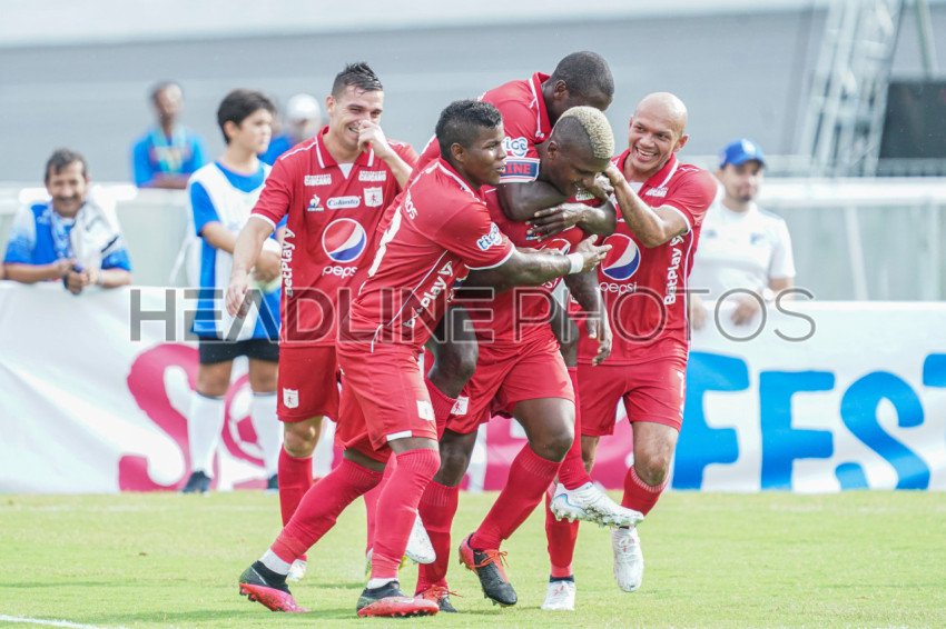Daytona, Florida, USA, July 2, 2022, America de Cali players celebrate goal during the SoccerFest at Daytona Speedway. (Photo Credit: Marty Jean-Louis)