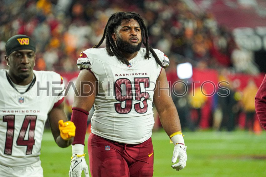 Tampa Bay, Florida, USA, January 12, 2025, Washington Commanders player Jer'Zhan Newton #95 at Raymond James Stadium. (Photo Credit: Marty Jean-Louis)