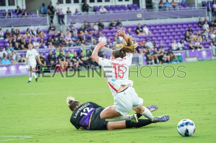 Orlando, Florida, USA, May 22, 2022, Orlando Pride defender Lawrence Carrie #12 makes a slide tackle inside the box during the first half at Exploria Stadium. (Photo Credit: Marty Jean-Louis)