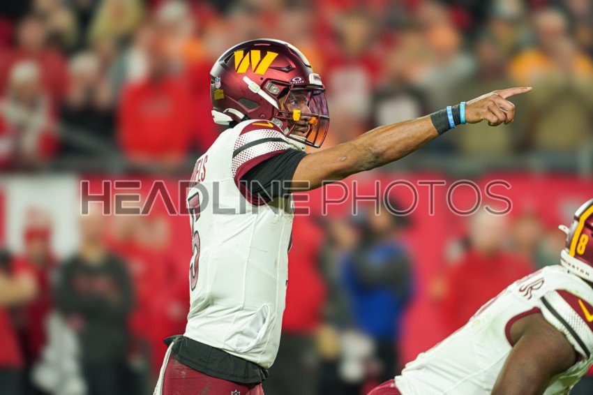 Tampa Bay, Florida, USA, January 12, 2025, Washington Commanders quarterback Jayden Daniels at Raymond James Stadium. (Photo Credit: Marty Jean-Louis)