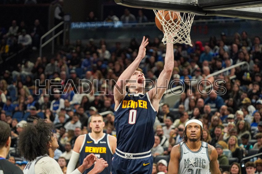 Orlando, Florida, USA, January 19, 2025, Denver Nuggets forward Christian Braun #0 attempt to score at the Kia Center. (Photo Credit: Marty Jean-Louis)