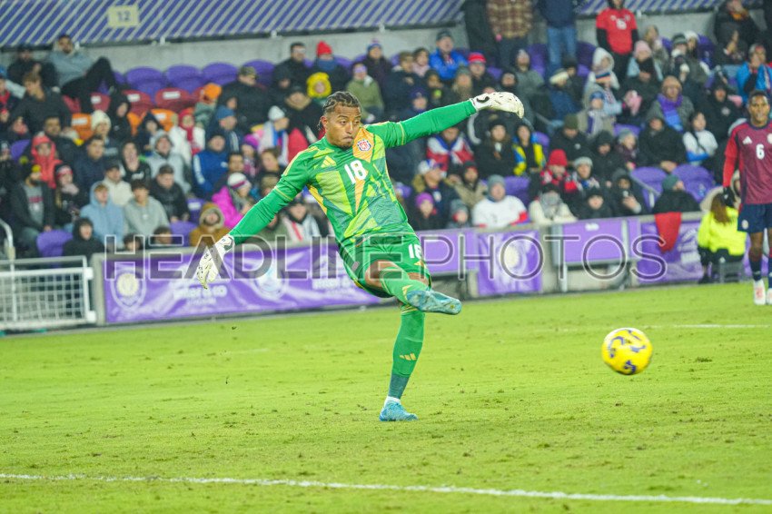 Orlando, Florida, January 22, 2025, Costa Rica goalkeeper Esteban Alvarado #1 makes a kick in a Friendly Match at Exploria Stadium. (Photo Credit: Marty Jean-Louis)