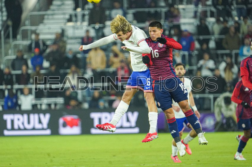 Orlando, Florida, January 22, 2025, USA midfielder Benjamin Cremaschi #6 wins the header in a Friendly Match at Exploria Stadium. (Photo Credit: Marty Jean-Louis)