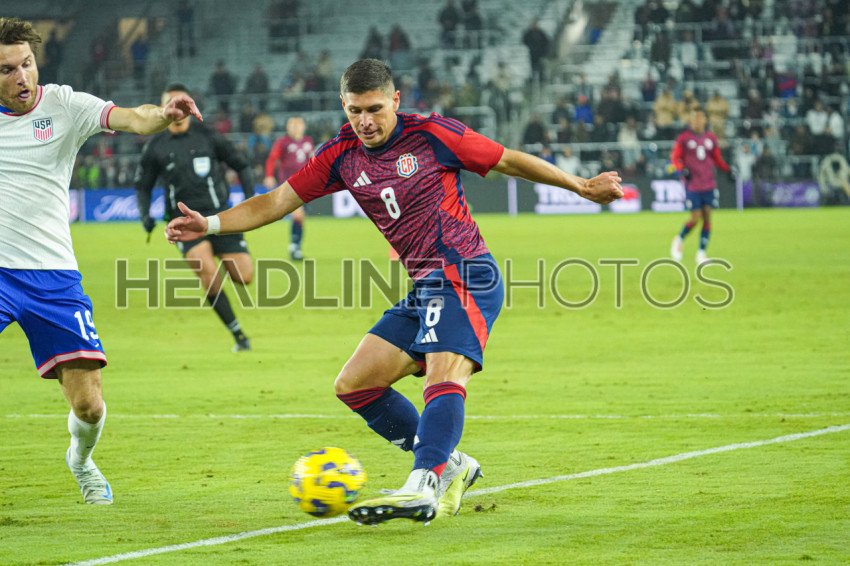 Orlando, Florida, January 22, 2025, Costa Rica defender Joseph Mora #8 makes a pass in a Friendly Match at Exploria Stadium. (Photo Credit: Marty Jean-Louis)
