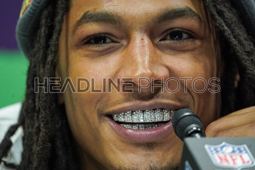 Chiefs player Isiah Pacheco answering questions from reporters During the Super Bowl LIX (59) Opening Night Ceremony at the Caesars Superdome in New Orleans, Louisiana