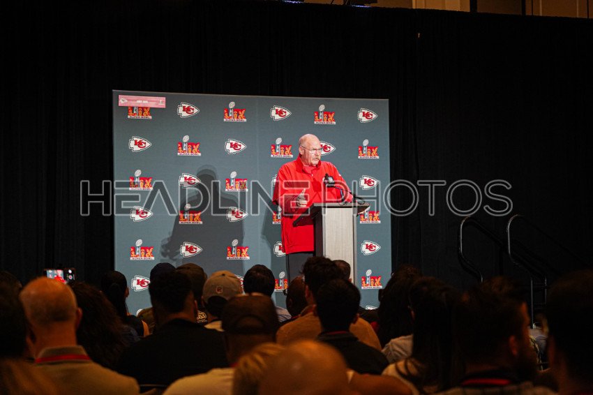 Chiefs head coach Andy Reid Answering questions during a Press Conference at the New Orleans Marriot in New Orleans, Louisiana