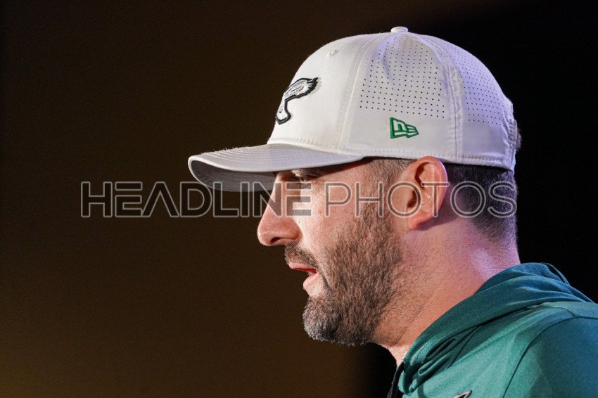 Eagles head coach Nick Sirianni Answering questions during a Press Conference at the Hilton New Orleans Riverside in New Orleans, Louisiana