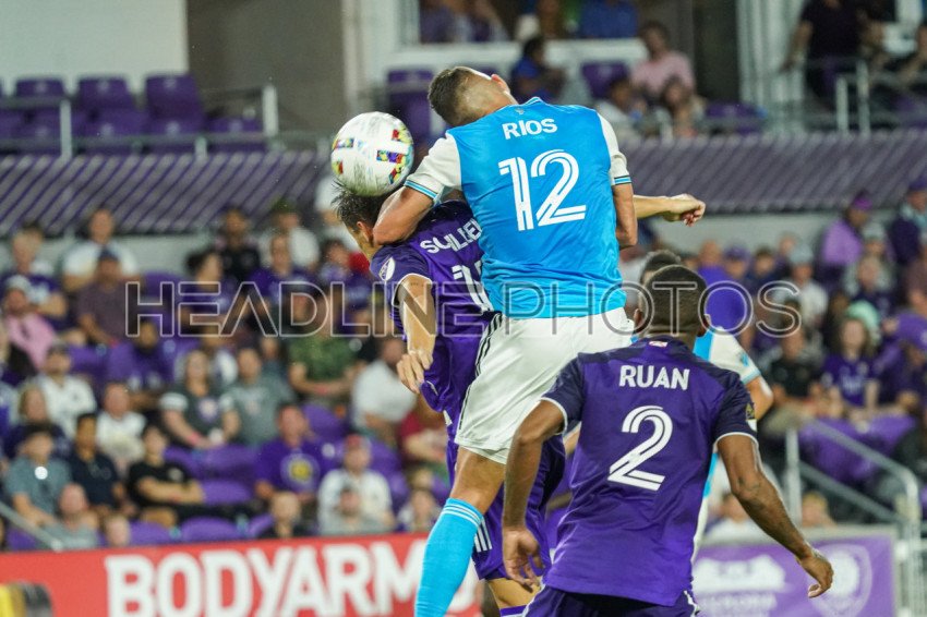 Orlando, Florida, USA, April 30, 2022, Charlotte FC player Daniel Rios #12 attempt to score with a header during the first half at Exploria Stadium. (Photo Credit: Marty Jean-Louis)