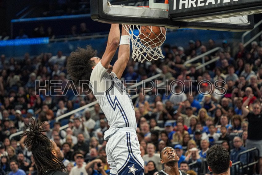 Orlando, Florida, USA, February 8, 2025, Orlando Magic guard Anthony Black #0 makes a dunk at the Kia Center. (Photo Credit: Marty Jean-Louis)