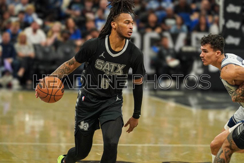 Orlando, Florida, USA, February 8, 2025, San Antonio Spurs forward Stephon Castle #5 runs forward at the Kia Center. (Photo Credit: Marty Jean-Louis)