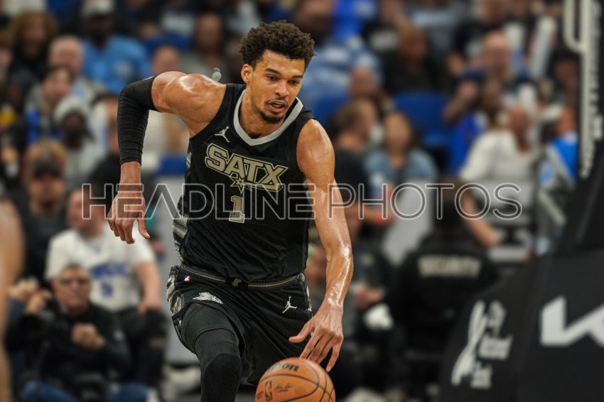 Orlando, Florida, USA, February 8, 2025, San Antonio Spurs center Victor Wembanyama #1 rushes forward at the Kia Center. (Photo Credit: Marty Jean-Louis)