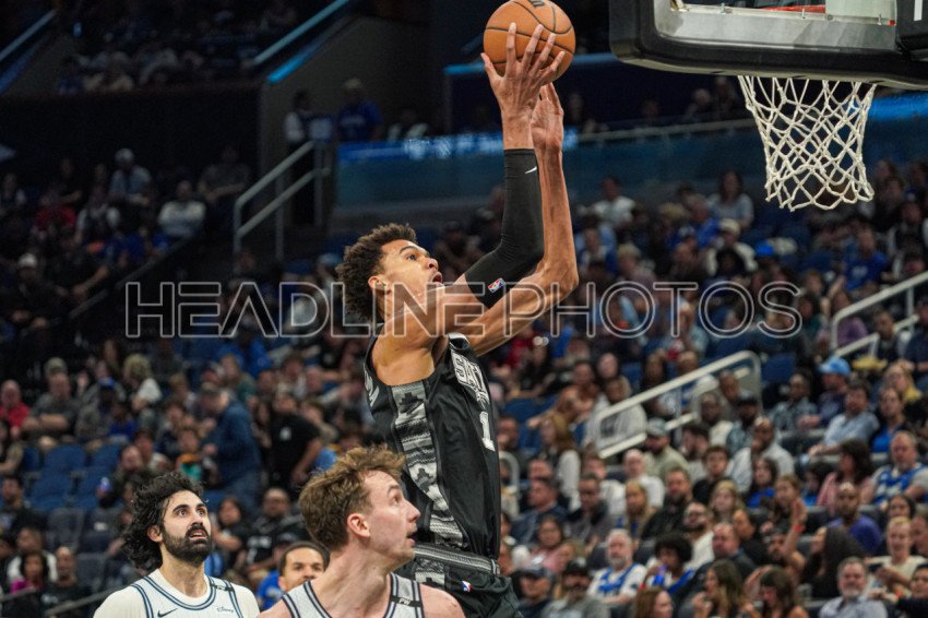 Orlando, Florida, USA, February 8, 2025, San Antonio Spurs center Victor Wembanyama #1 attempt to score at the Kia Center. (Photo Credit: Marty Jean-Louis)