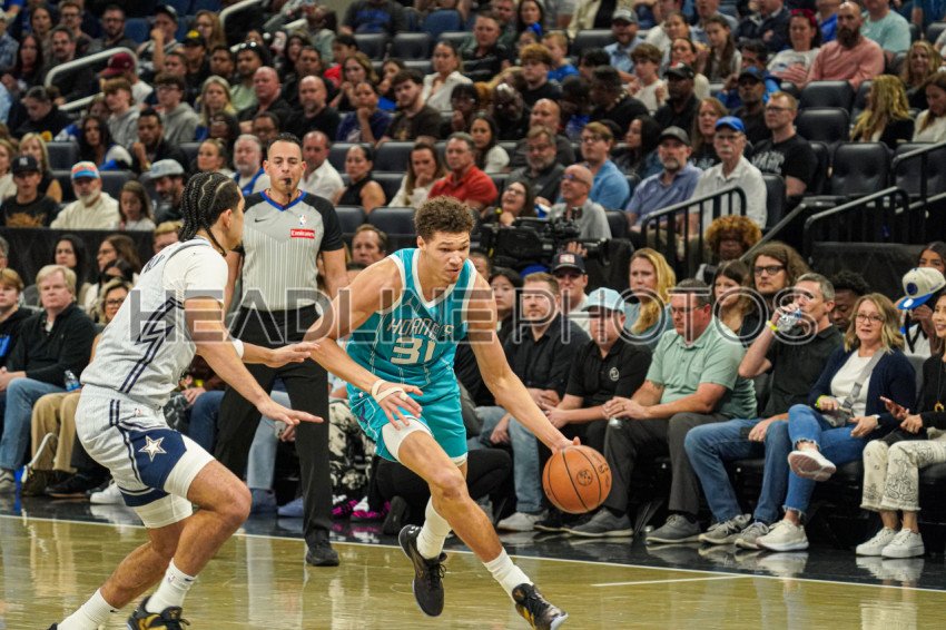 Orlando, Florida, USA, February 12, 2025, Charlotte Hornets forward Tidjane Salaun #31 rushes forward at the Kia Center. (Photo Credit: Marty Jean-Louis)