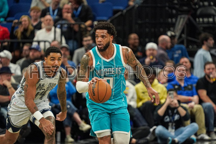 Orlando, Florida, USA, February 12, 2025, Charlotte Hornets forward Miles Bridges #0 rushes forward at the Kia Center. (Photo Credit: Marty Jean-Louis)