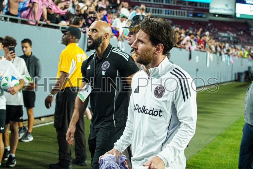 Tampa, Florida, USA, February 14, 2025, Inter Miami players Lionel Messi #10 heading back to the locker at the end of the match in a friendly Florida Derby Match at Raymond James Stadium. (Photo Credit: Marty Jean-Louis)