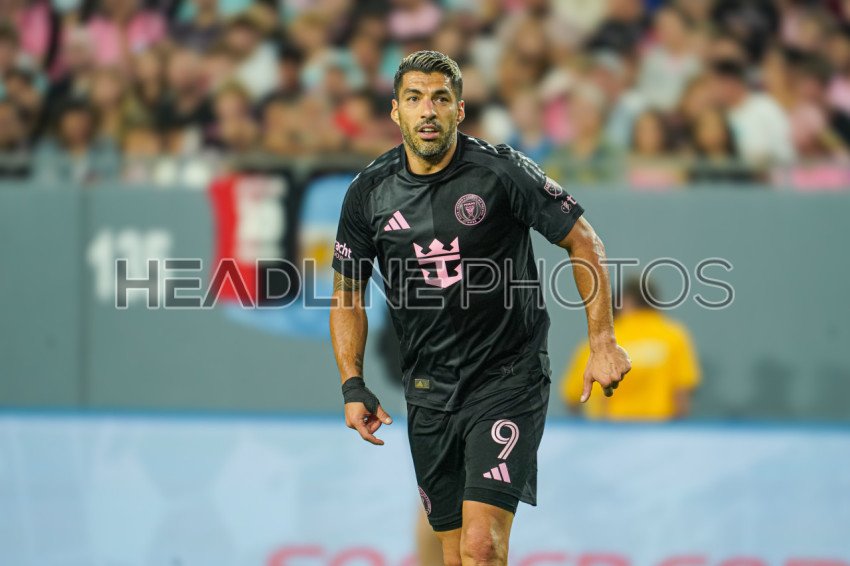 Tampa, Florida, USA, February 14, 2025, Inter Miami forward Luis Suarez #9 in a friendly Florida Derby Match at Raymond James Stadium. (Photo Credit: Marty Jean-Louis)