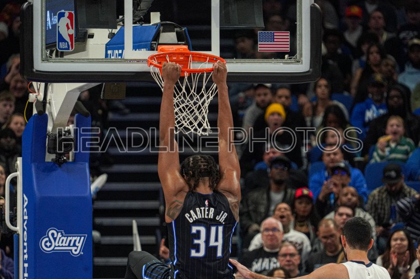 Orlando, Florida, USA, February 21, 2025, Orlando Magic forward Wendell Carter Jr #34 makes a dunk at the Kia Center. (Photo Credit: Marty Jean-Louis)