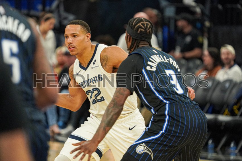 Orlando, Florida, USA, February 21, 2025, Memphis Grizzlies guard Desmond Bane #22 makes a pass at the Kia Center. (Photo Credit: Marty Jean-Louis)