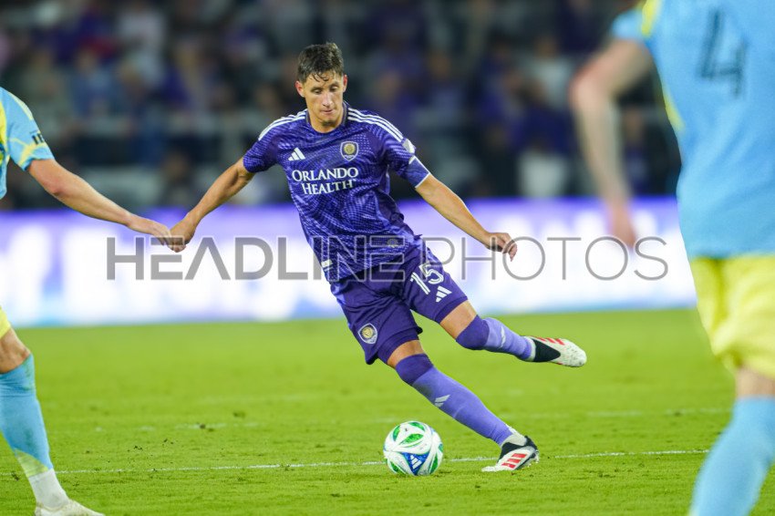 Orlando, Florida, USA, February 22, 2025, Philadelphia Union defender odrigo Schlegel #15 makes a pass at Exploria Stadium. (Photo Credit: Marty Jean-Louis)