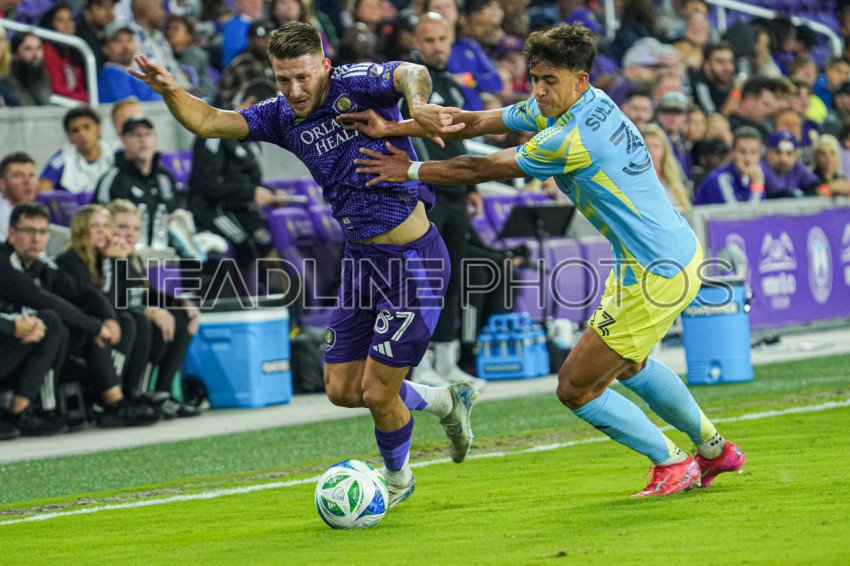 Orlando, Florida, USA, February 22, 2025, Orlando City SC midfielder Marco Pasalic #87 fight to keep the ball at Exploria Stadium. (Photo Credit: Marty Jean-Louis)