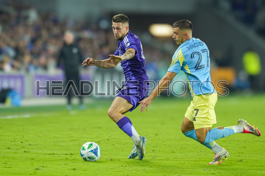 Orlando, Florida, USA, February 22, 2025, Philadelphia Union midfielder Marco Pasalic #87 attempt to keep the ball at Exploria Stadium. (Photo Credit: Marty Jean-Louis)