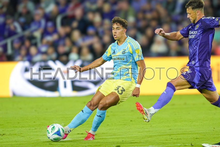 Orlando, Florida, USA, February 22, 2025, Philadelphia Union midfielder Quinn Sullivan #33 makes a pass at Exploria Stadium. (Photo Credit: Marty Jean-Louis)