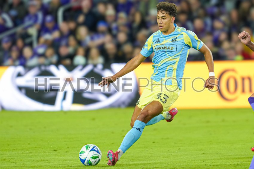 Orlando, Florida, USA, February 22, 2025, Philadelphia Union midfielder Quinn Sullivan #33 makes a pass at Exploria Stadium. (Photo Credit: Marty Jean-Louis)