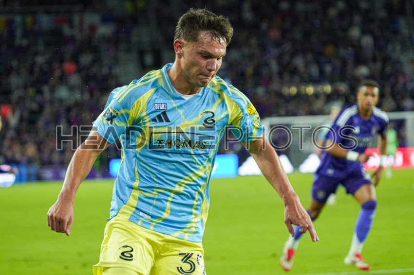 Orlando, Florida, USA, February 22, 2025, Philadelphia Union defender Francis Westfield #39 runs up field at Exploria Stadium. (Photo Credit: Marty Jean-Louis)