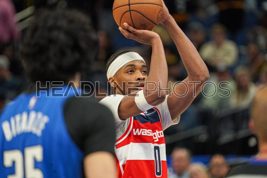 Orlando, Florida, USA, February 23, 2025, Washington Wizards forward Bilal Coulibaly #0 attempt to score with a free throw at the Kia Center. (Photo Credit: Marty Jean-Louis)