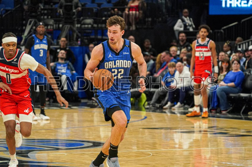 Orlando, Florida, USA, February 23, 2025, Orlando Magic forward Franz Wagner #22 rushes forward at the Kia Center. (Photo Credit: Marty Jean-Louis)