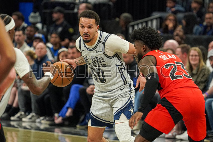 Orlando, Florida, USA, March 2, 2025, Orlando Magic guard Cole Anthony #50 attempt to run pass Jamal Shead #23 at the Kia Center. (Photo Credit: Marty Jean-Louis)