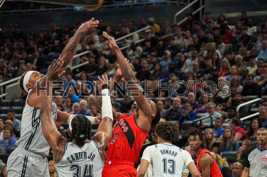 Orlando, Florida, USA, March 2, 2025, Toronto Raptors forward Jonathan Mogbo #2 attempt to score at the Kia Center. (Photo Credit: Marty Jean-Louis)