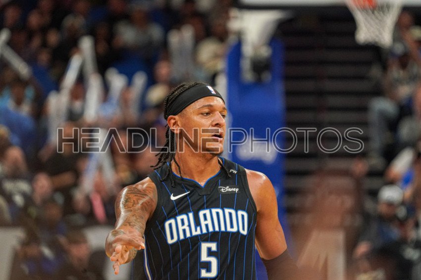 Orlando, Florida, USA, March 19, 2024, Orlando Magic forward Paolo Banchero #5 reacts after making a three at the Kia Center. (Photo Credit: Marty Jean-Louis)