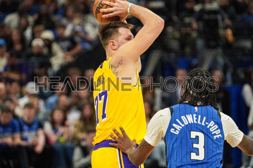 Orlando, Florida, USA, March 24, 2025, Los Angeles Lakers guard Luka Doncic #77 makes a pass at the Kia Center. (Photo Credit: Marty Jean-Louis)