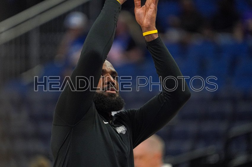 Orlando, Florida, USA, March 24, 2025, Los Angeles Lakers forward Lebron James #23 warming up at the Kia Center. (Photo Credit: Marty Jean-Louis)